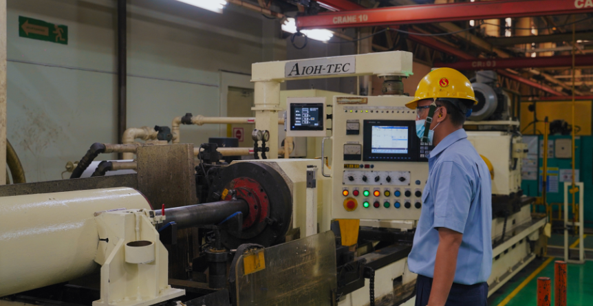 Hydraulic cylinders, pipes, and pins are the components produced in the Hydraulic Plant. With a maximum capacity of production for each are 5000 pieces/month, Komatsu Indonesia is able to cater for the hydraulic cylinder products for its excavators.